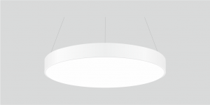 Светодиодный светильник в виде круга LiNE-PRO мощностью 110 Вт и диаметром 900 мм изготовлен из алюминиевого основания, с установленными на него светодиодными модулями. Возможна различная цветовая температура - 3000К, 4000К, 5000К, 6000К. Боковины могут быть изготовлены из плотного ПВХ различного цвета, на выбор или светотехнического акрила и выполнять функцию рассеивателя. Блок питания внутри корпуса светильника. Монтаж на тросовых подвесах или непосредственно к потолку или стене.