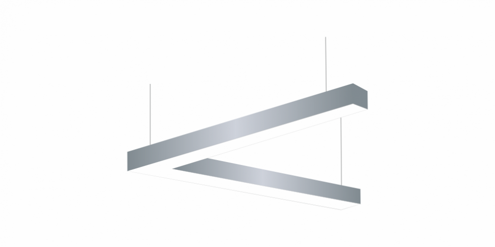 Светодиодный Угловой светильник LiNE-Pro 45гр. 1000х1000mm 40W 4000K серый предназначен для накладного или подвесного монтажа на тросовые подвесы. Изготовлен из сплошного сварного алюминиевого профиля в виде угла под 45 градусов. Высота установки светильника регулируется подвесом с цанговым тросовым зажимом и может варьироваться от 0,05 метра до 4 метров от основного потолка. Светильник имеет равномерную засветку по всей площади рассеивателя. Источник питания находится внутри корпуса. Торцевые заглушки входят в комплект. Возможно изготовление светильника с магистральной проводкой для соединения нескольких светильников в сплошную конструкцию.