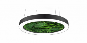 Светодиодный светильник в виде кольца с натуральными стабилизированными растениями. Возможны различные варианты размеров, мощности и наполнения. Блок питания внутри корпуса светильника. Монтаж на тросовых подвесах или непосредственно к потолку или стене.