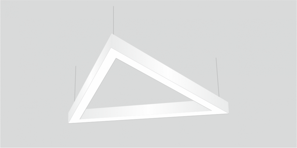 Светодиодный Треугольный светильник LiNE-Pro 3х500mm 60W 5000K белый предназначен для накладного или подвесного монтажа на тросовые подвесы. Изготовлен из сплошного сварного алюминиевого профиля в виде равностороннего треугольника. Высота установки светильника регулируется подвесом с цанговым тросовым зажимом и может варьироваться от 0,05 метра до 4 метров от основного потолка. Треугольный светильник имеет равномерную засветку по всей площади рассеивателя. Источник питания находится внутри корпуса.
