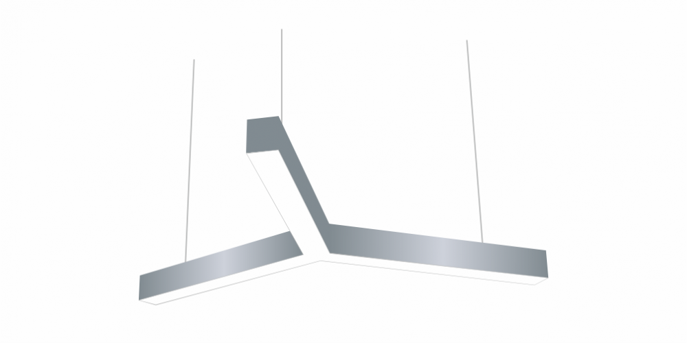 Светодиодный Лучевой светильник LiNE-Pro 3х750mm 80W 5000K серый предназначен для накладного или подвесного монтажа на тросовые подвесы. Изготовлен из сплошного сварного алюминиевого профиля в виде буквы «Y». Высота установки светильника регулируется подвесом с цанговым тросовым зажимом и может варьироваться от 0,05 метра до 4 метров от основного потолка. Светильник имеет равномерную засветку по всей площади рассеивателя. Источник питания находится внутри корпуса. Торцевые заглушки входят в комплект. Возможно изготовление светильника с магистральной проводкой для соединения нескольких светильников в сплошную конструкцию.