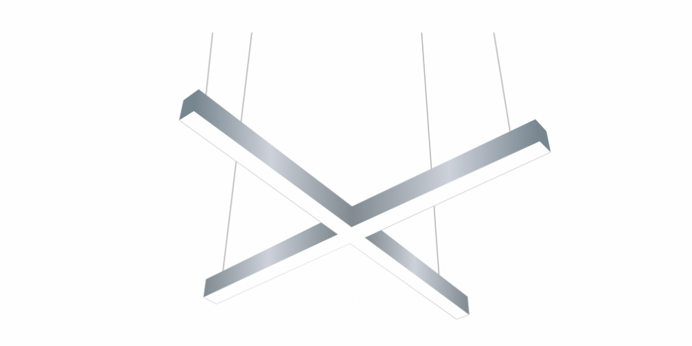 Светодиодный Лучевой светильник LiNE-Pro 4х500mm 80W 3000K серый предназначен для накладного или подвесного монтажа на тросовые подвесы. Изготовлен из сплошного сварного алюминиевого профиля в виде буквы «Х» (крестом). Высота установки светильника регулируется подвесом с цанговым тросовым зажимом и может варьироваться от 0,05 метра до 4 метров от основного потолка. Крестовой светильник имеет равномерную засветку по всей площади рассеивателя. Источник питания находится внутри корпуса. Торцевые заглушки входят в комплект. Возможно изготовление светильника с магистральной проводкой для соединения нескольких светильников в сплошную конструкцию.