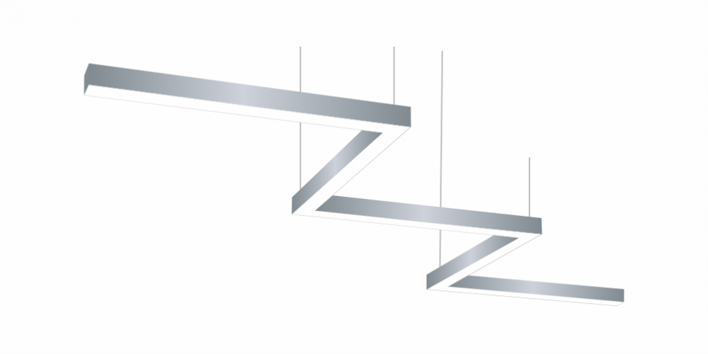 Фигурный светодиодный Светильник Зигзаг LiNE-Pro 5х500mm 45W 3000K серый предназначен для накладного или подвесного монтажа на тросовые подвесы. Изготовлен из сплошного сварного алюминиевого профиля в виде зигзага. Высота установки светильника регулируется подвесом с цанговым тросовым зажимом и может варьироваться от 0,05 метра до 4 метров от основного потолка. Светильник Зигзаг имеет равномерную засветку по всей площади рассеивателя. Источник питания находится внутри корпуса. Торцевые заглушки входят в комплект. Возможно изготовление светильника с магистральной проводкой для соединения нескольких светильников в сплошную конструкцию