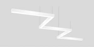 Фигурный светодиодный Светильник Зигзаг LiNE-Pro 5х500mm 90W 6000K белый предназначен для накладного или подвесного монтажа на тросовые подвесы. Изготовлен из сплошного сварного алюминиевого профиля в виде зигзага. Высота установки светильника регулируется подвесом с цанговым тросовым зажимом и может варьироваться от 0,05 метра до 4 метров от основного потолка. Светильник Зигзаг имеет равномерную засветку по всей площади рассеивателя. Источник питания находится внутри корпуса. Торцевые заглушки входят в комплект. Возможно изготовление светильника с магистральной проводкой для соединения нескольких светильников в сплошную конструкцию