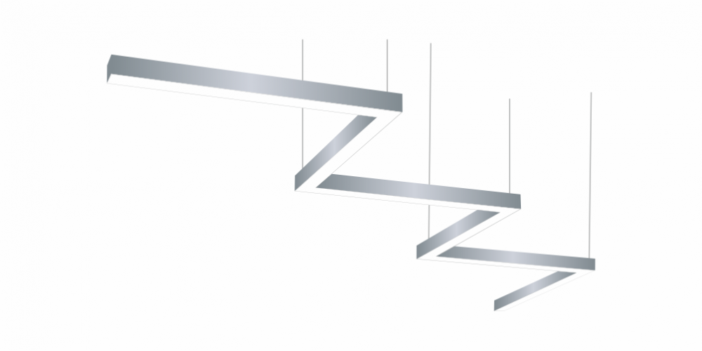 Фигурный светодиодный Светильник Зигзаг LiNE-Pro 6х500mm 60W 5000K серый предназначен для накладного или подвесного монтажа на тросовые подвесы. Изготовлен из сплошного сварного алюминиевого профиля в виде зигзага. Высота установки светильника регулируется подвесом с цанговым тросовым зажимом и может варьироваться от 0,05 метра до 4 метров от основного потолка. Светильник Зигзаг имеет равномерную засветку по всей площади рассеивателя. Источник питания находится внутри корпуса. Торцевые заглушки входят в комплект. Возможно изготовление светильника с магистральной проводкой для соединения нескольких светильников в сплошную конструкцию