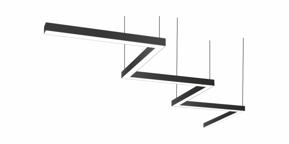 Фигурный светодиодный Светильник Зигзаг LiNE-Pro 6х500mm 60W 6000K черный предназначен для накладного или подвесного монтажа на тросовые подвесы. Изготовлен из сплошного сварного алюминиевого профиля в виде зигзага. Высота установки светильника регулируется подвесом с цанговым тросовым зажимом и может варьироваться от 0,05 метра до 4 метров от основного потолка. Светильник Зигзаг имеет равномерную засветку по всей площади рассеивателя. Источник питания находится внутри корпуса. Торцевые заглушки входят в комплект. Возможно изготовление светильника с магистральной проводкой для соединения нескольких светильников в сплошную конструкцию