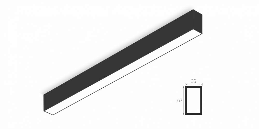 Линейный светодиодный Накладной светильник LiNE-Pro 67x35 500mm 15W 5000K Черный предназначен для накладного монтажа на ровную поверхность для любых потолков. Изготовлен из алюминиевого профиля длиной 500 мм, мощностью 15 Вт c цветовой температурой 5000 K, цвет корпуса Черный. Светильник имеет равномерную засветку по всей площади рассеивателя. Источник питания находится внутри корпуса. Торцевые заглушки входят в комплект.