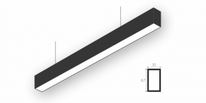 Линейный светодиодный Подвесной светильник LiNE-Pro 67x35 1500mm 82W 5000K Черный предназначен для подвесного монтажа на тросовые подвесы. Изготовлен из алюминиевого профиля длиной 1500 мм, мощностью 82 Вт c цветовой температурой 5000 K, цвет корпуса Черный. Высота установки светильника регулируется подвесом с цанговым тросовым зажимом и может варьироваться от 0,05 метра до 4 метров от основного потолка. Линейный светильник может использоваться для реечных потолков. Светильник имеет равномерную засветку по всей площади рассеивателя. Источник питания находится внутри корпуса. Торцевые заглушки входят в комплект.
