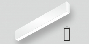 Линейный светодиодный Подвесной светильник LiNE-Pro 90x35 1000mm 45W 6000K Белый предназначен для подвесного монтажа на тросовые подвесы. Изготовлен из алюминиевого профиля длиной 1000 мм, мощностью 45 Вт c цветовой температурой 6000 K, цвет корпуса Белый. Высота установки светильника регулируется подвесом с цанговым тросовым зажимом и может варьироваться от 0,05 метра до 4 метров от основного потолка. Линейный светильник может использоваться для реечных потолков. Светильник имеет равномерную засветку по всей площади рассеивателя. Источник питания находится внутри корпуса. Торцевые заглушки входят в комплект.