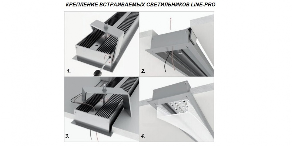 Линейный светодиодный Встраиваемый светильник LiNE-Pro 32x120 1000mm 40W 4000K Белый предназначен для встраиваемого монтажа в потолки из гипсокартона либо в плитки потолка армстронг. Изготовлен из алюминиевого профиля длиной 1000 мм, мощностью 40 Вт c цветовой температурой 4000 K, цвет корпуса Белый. Крепится светильник с помощью комплекта прижимных скоб. Светильник имеет равномерную засветку по всей площади рассеивателя. Источник питания и торцевые заглушки входят в комплект.
