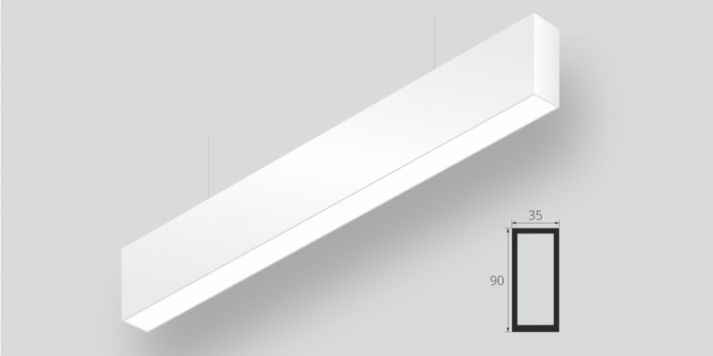 Линейный модульный светодиодный Подвесной светильник LiNE-Pro 90x35 500mm 30W 6000K Белый предназначен для подвесного монтажа на тросовые подвесы. Изготовлен из алюминиевого профиля длиной 500 мм, мощностью 30 Вт c цветовой температурой 6000 K, цвет корпуса Белый. Светильники соединяются в сплошную линию с помощью комплекта линейного соединения и сплошной магистральной проводки. Светильник имеет равномерную засветку по всей площади рассеивателя. Источник питания находится внутри корпуса.